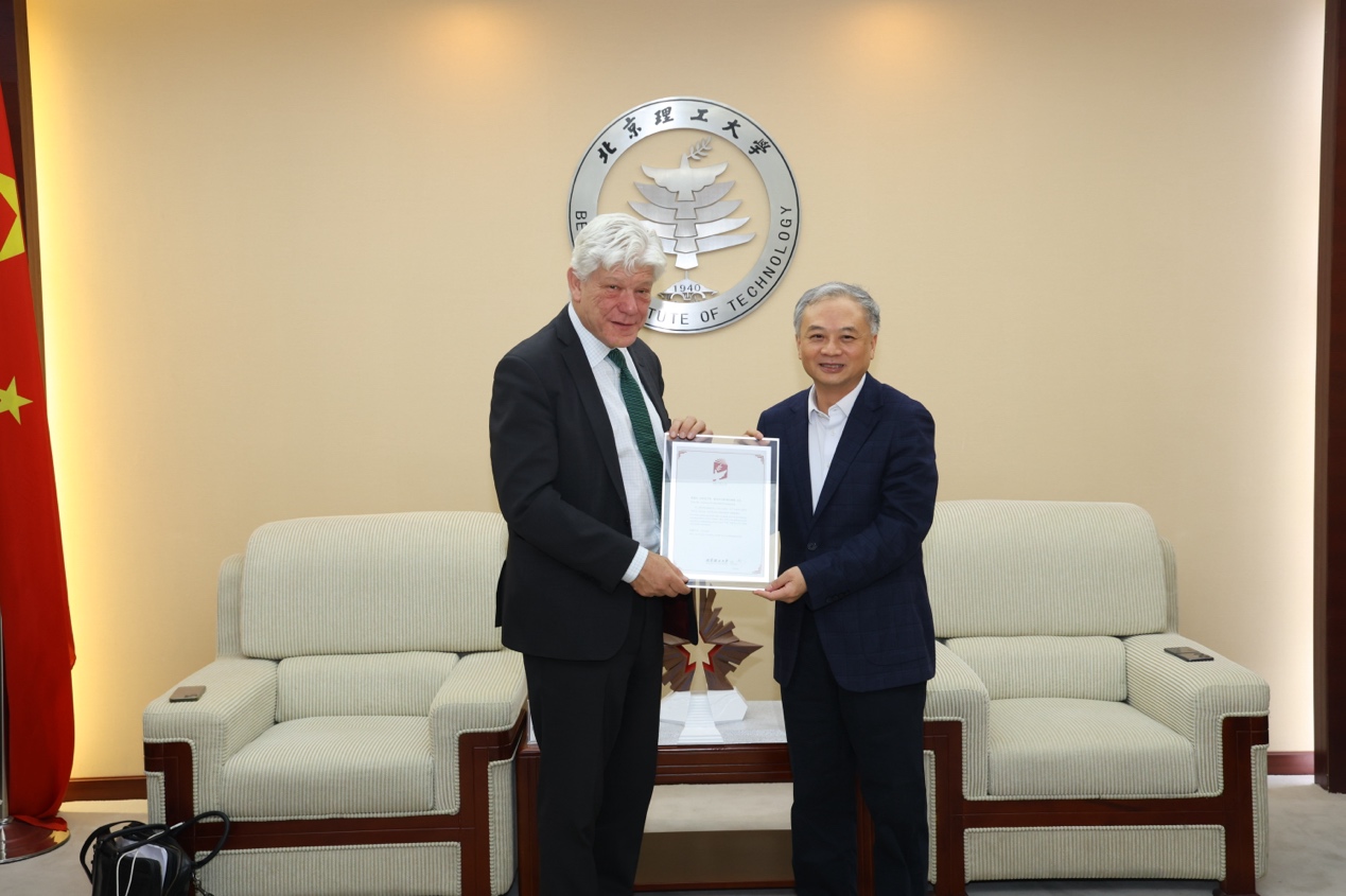 会谈中,副校长魏一鸣向霍克希尔德做客学校“百家大讲堂 SGG Talk”表示感谢和欢迎,介绍了学校近年来快速发展所取得的部分成绩,在国际化人才培养和全球治理教育体系建设方面的进展,并为其颁发“百家大讲堂”纪念证书。魏一鸣指出,学校将持续拓展国际交流平台,为青年深度参与全球事务提供有力支撑。