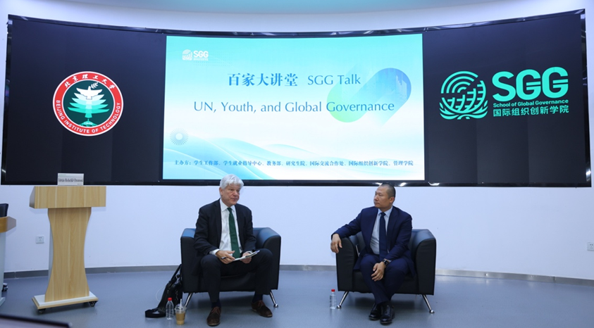 会见后,学校举办了“联合国、青年和治理”对话,对话由国际组织创新学院常务院长、管理学院副院长刘浩主持,学生与霍克希尔德围绕联合国的历史成绩、未来改革和挑战,全球安全治理发展态势和全球南方的机遇,青年人参与全球治理的能力和机遇,科技全球治理和跨学科复合型人才需求等进行了坦诚深入交流。校学生工作部副部长史建伟,学生工作部副部长邓岩,教务部副部长赵昊,研究生院培养办公室副主任曹鹏,学生服务中心主任徐贵宝,学生就业指导中心主任管帅华,副主任刘远成,留学生中心副主任刘伟光,校团委志愿工作部部长赵静,学生工作部干部王雪,管理学院党委书记颜志军,管理学院副院长关宏,国际组织创新学院院长助理张弛,管理学院学生工作办公室主任陈楷元等出席活动,来自管理、法学、信息、自动化和宇航等不同学科背景的中外学生一同参加交流。