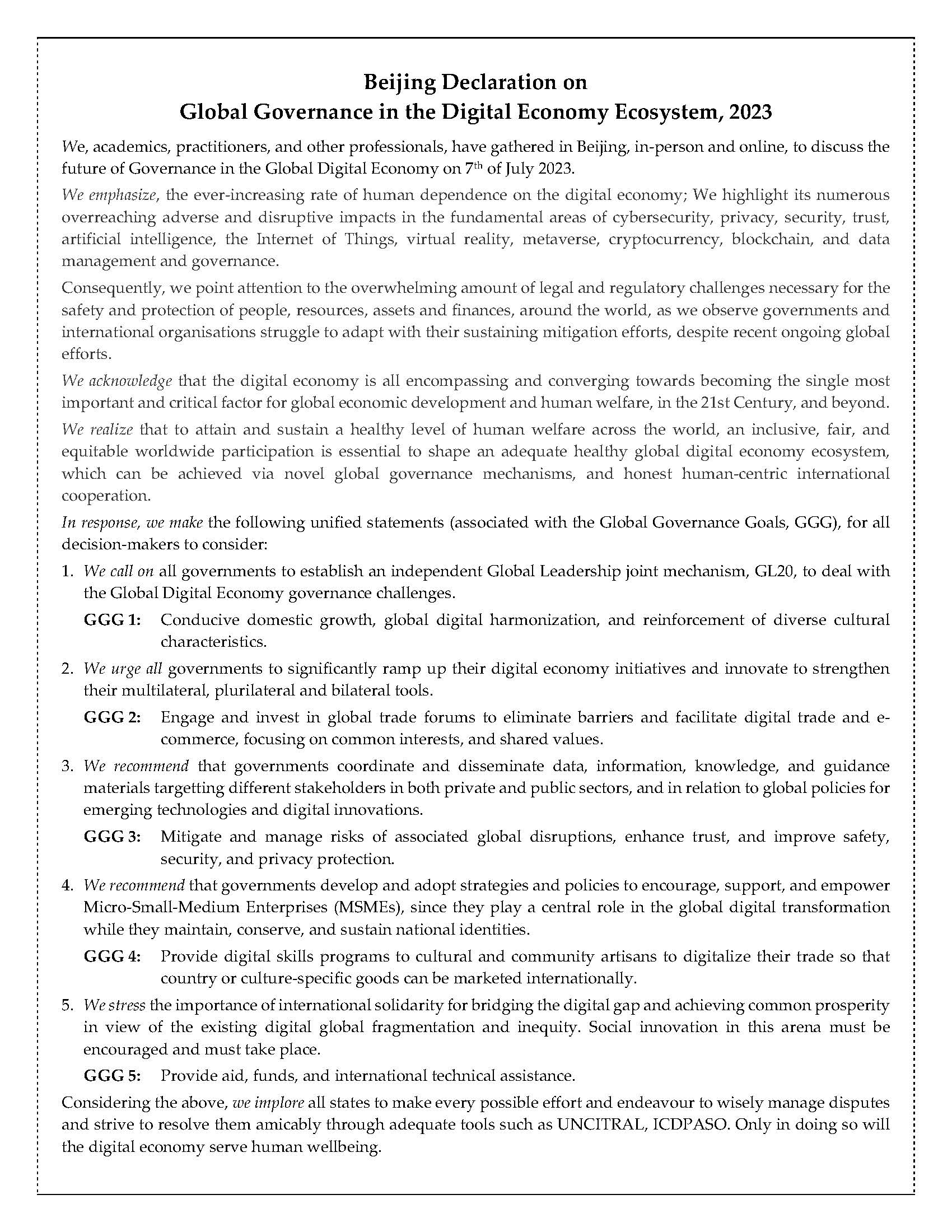 《数字经济北京宣言2023》发布!Beijing Declaration Released