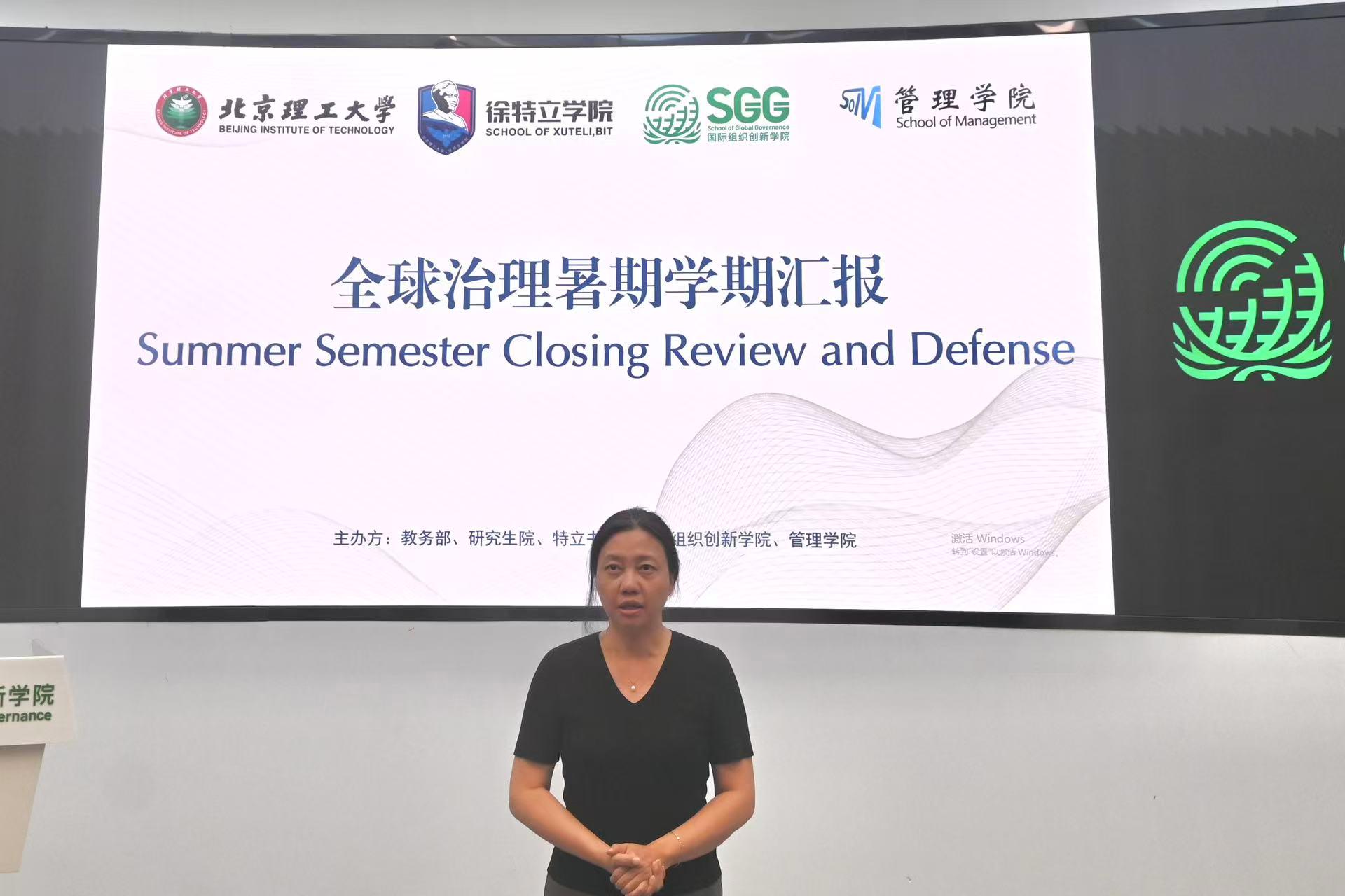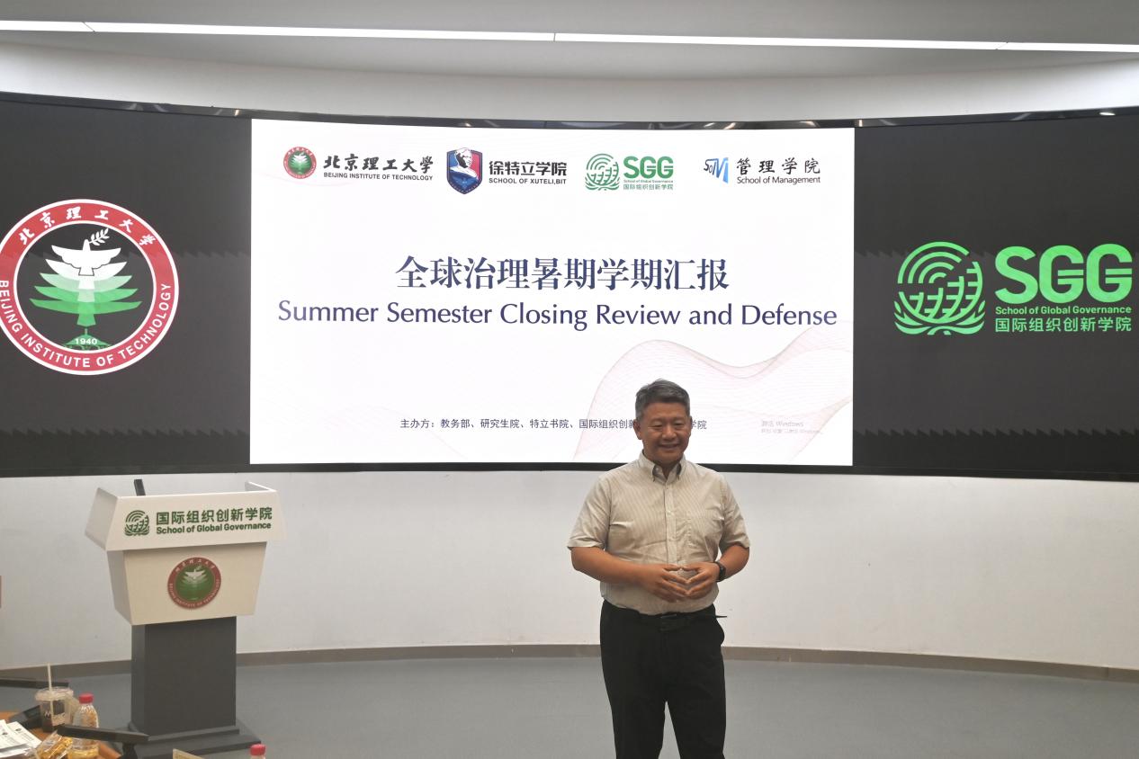 9月6日,教务部、研究生院指导,国际组织创新学院、管理学院、特立书院组织2025全球治理暑期学期汇报答辩会。教务部副部长赵昊,徐特立学院(特立书院)党委书记冯慧华、副院长张玮,国际组织创新学院院长、管理学院院长唐葆君院长、常务副院长刘浩、副院长关宏,副院长叶选挺和公共管理系教师参加汇报会。汇报会由2024级本科生王子渔同学主持。
